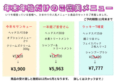 ヘッドスパ30分+水素トリートメント(¥5,963)